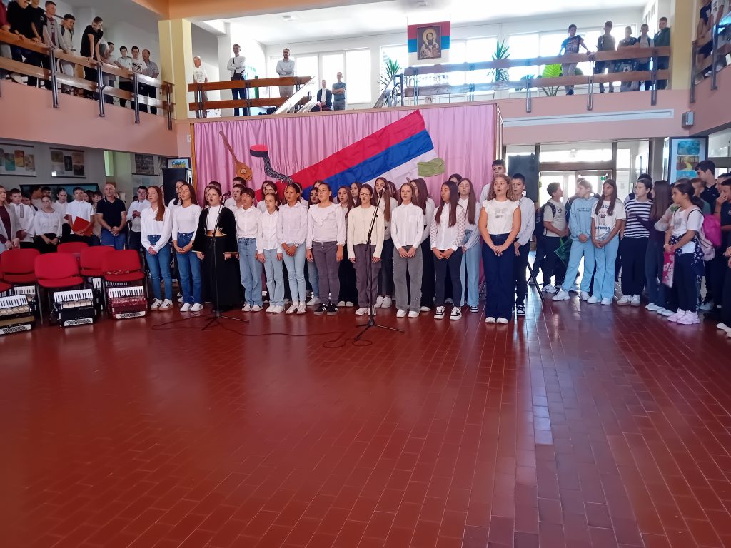 Данас је у нашој школи обиљежен Дан српског јединства, слободе и националне заставе. Овај дан обиљежава се од 2021.године у Србији и Републици Српској са циљем његовања националног идентитета. Дан српског јединства, слободе и националне заставе обиљежава се на данашњи датум у знак сјећања на 15.септембар 1918. године када је, у Првом свјетском рату, пробијен Солунски фронт.